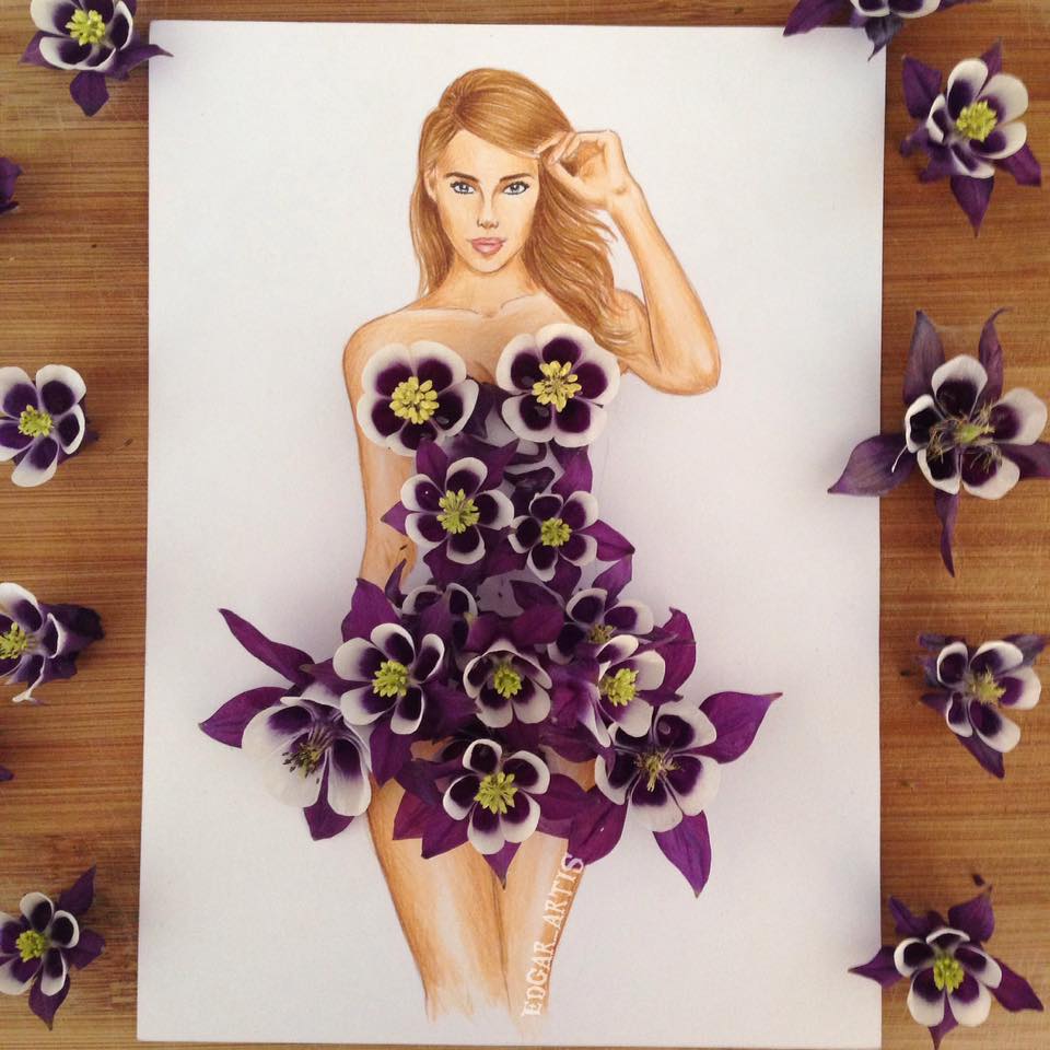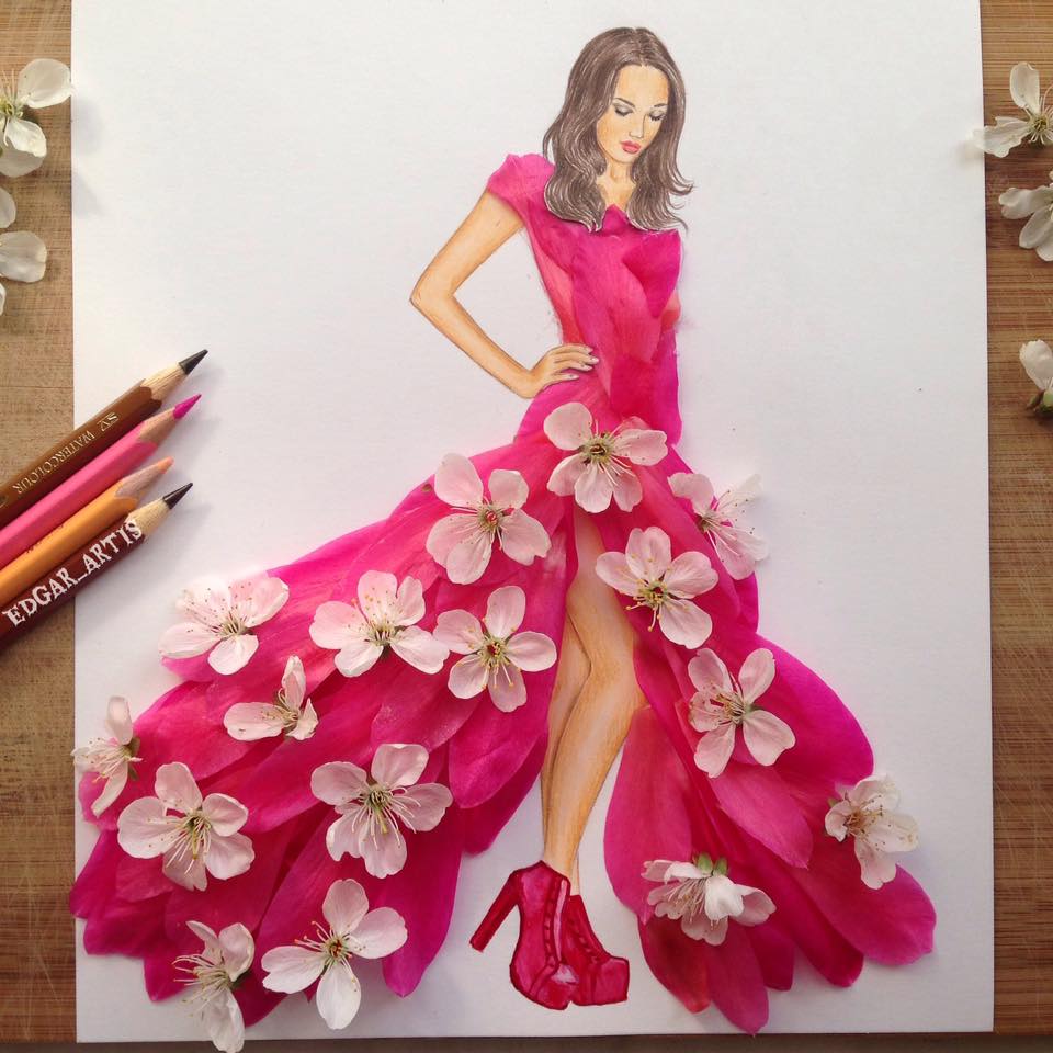 Edgar Artis is an Armenian fashion illustrator who uses food items,paper cut-outs, nails, flowers and common objects found withing the house to create amazing dress designs. Have you ever seen a dress made out of those items listed above? take a look at these sketches and you will be wowed by the creativity of this talented artist.