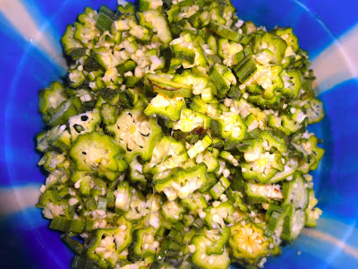 While your stock is on fire , cut the okra fingers into tiny pieces. The tinier you cut the okra, the more it will draw. To achieve this, you need to make a few vertical cuts followed by horizontal cuts across the okra fingers.